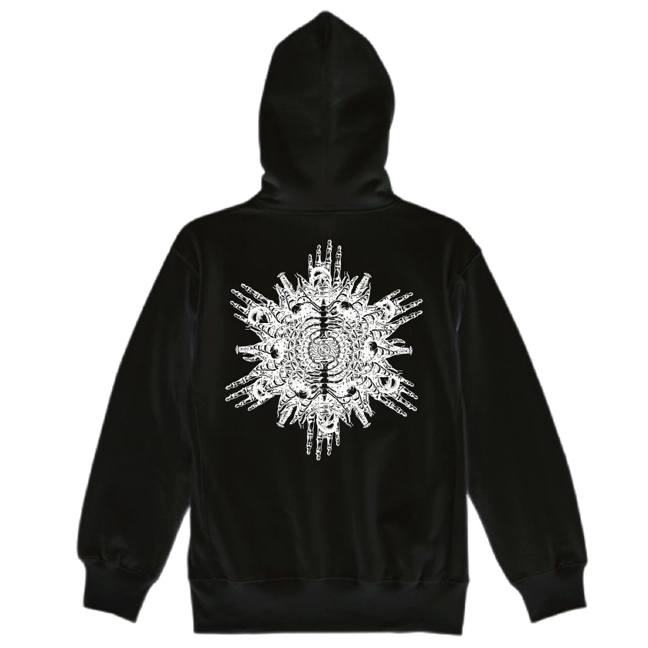 【受注予約:4月下旬より発送】 Bone Mandala Graphic Heavy Weight Pull Hoodie Black