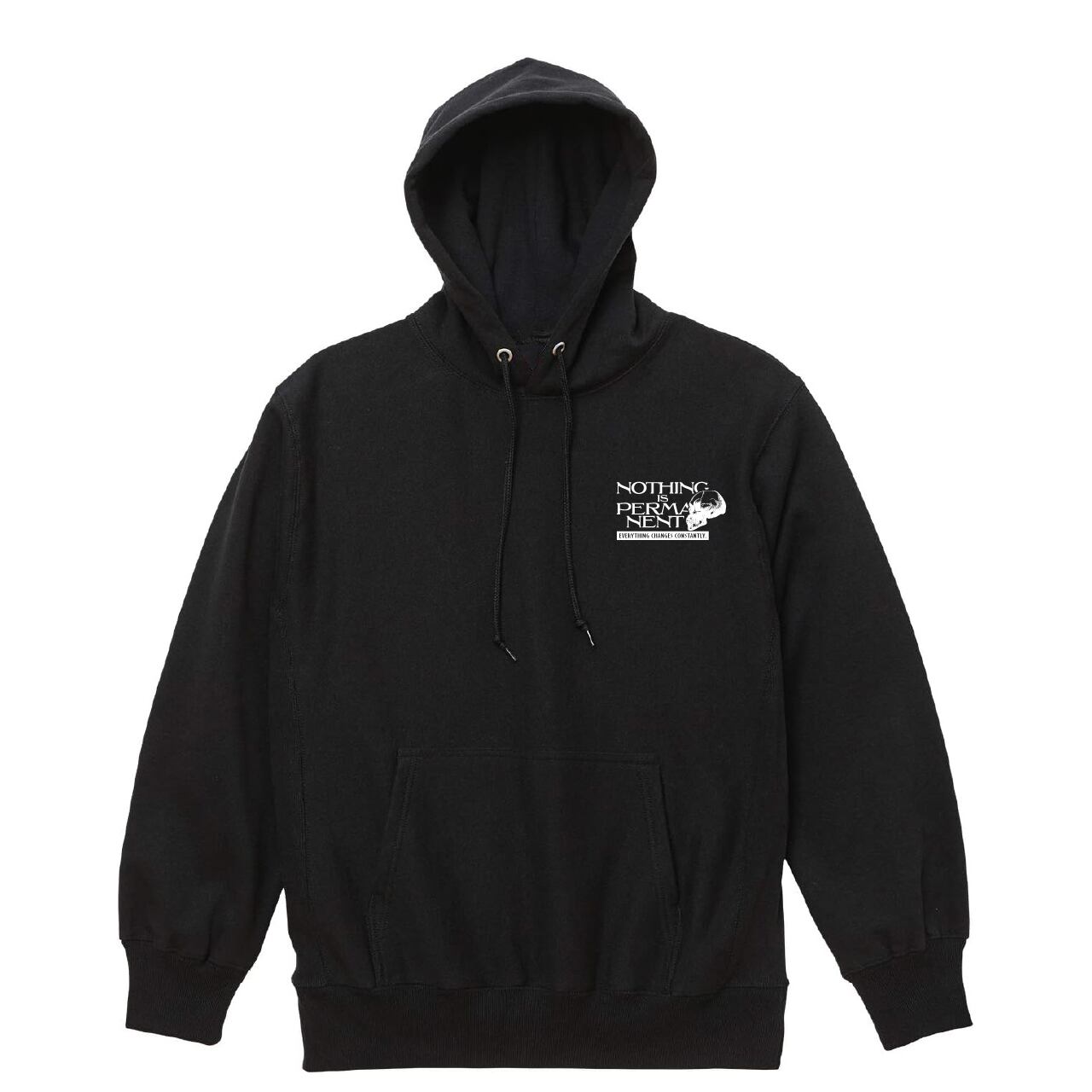 胸元にはnothing is permanentのロゴとともに“EVERYTHING CHANGES CONSTANTLY.”のブランドメッセージを添えた一着。